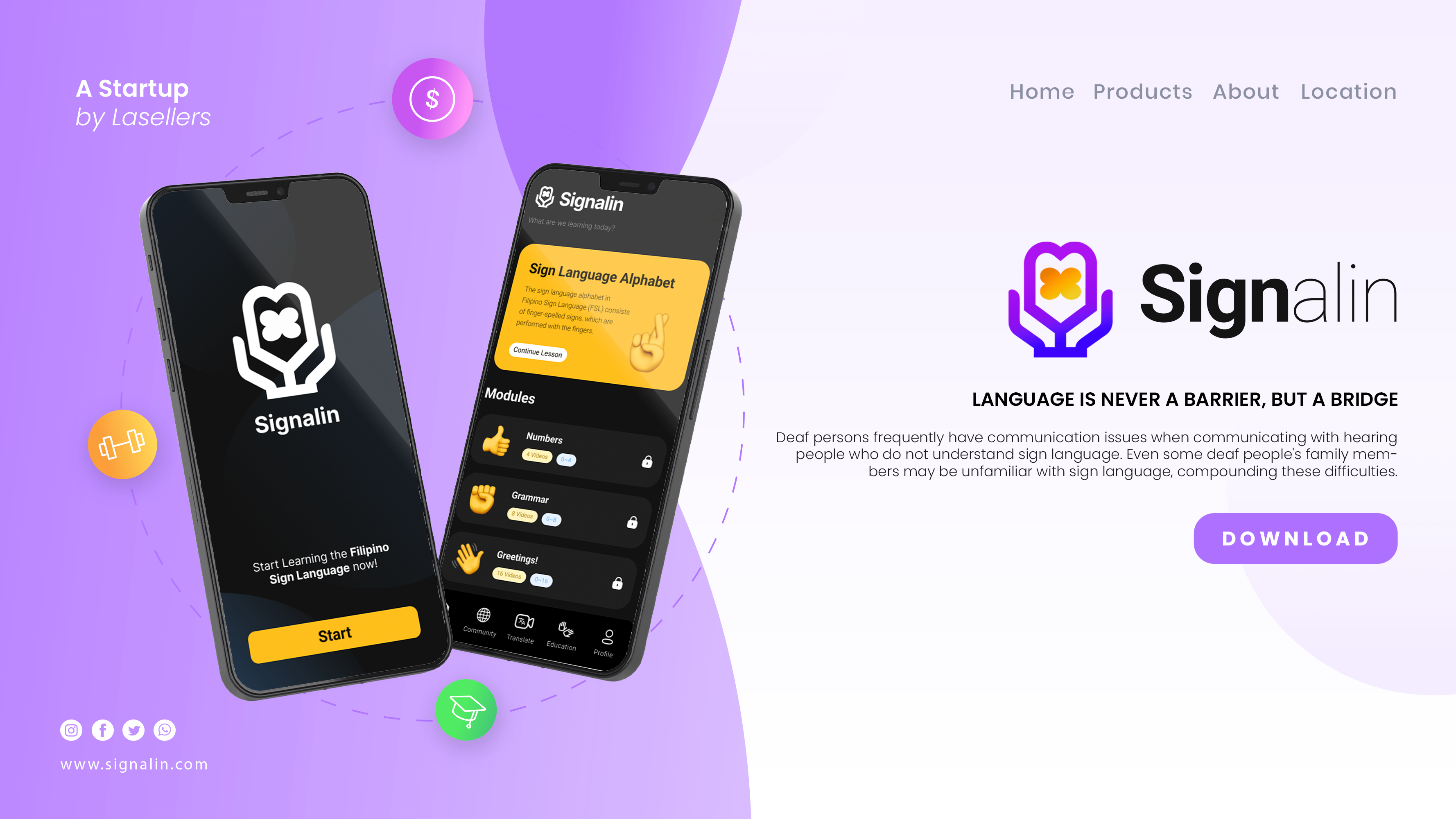 Signalin is an innovative app designed to bridge communication gaps between deaf and hearing individuals by facilitating real-time communication through hand gestures converted to speech, offering interactive sign language training programs, and implementing sentiment analysis tools to enhance emotional expression.